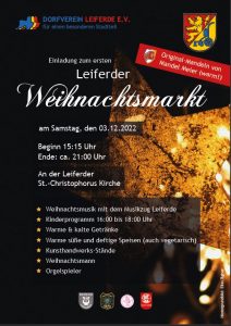 Am 3.12.2022 findet unser erster Weihnachtsmarkt an der Kirche in Leiferde statt.